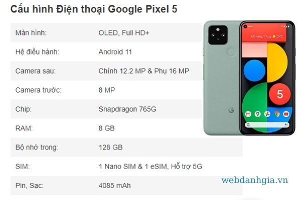 Cấu hình máy điện thoại Google pixel 5