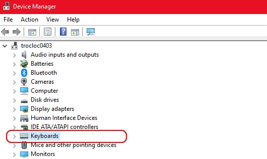 Bước 2: Trên cửa sổ Device Manager, tìm đến phần Keyboards để tiến hành vô hiệu hóa bàn phím.