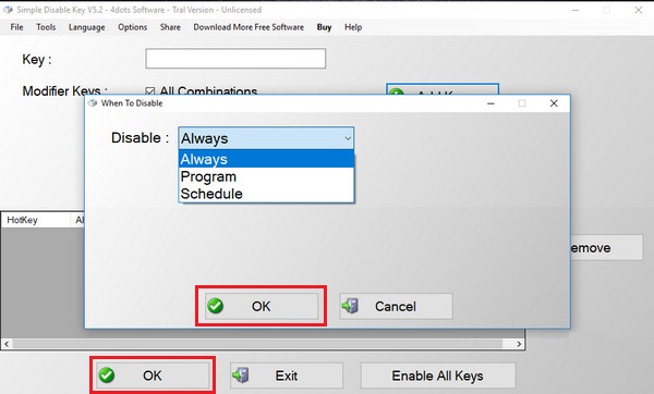 Bước 4: Cuối cùng nhấn Ok để hoàn tất quá trình vô hiệu hóa key.