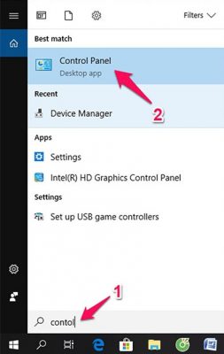 - Bước 1: Gõ vào ô tìm kiếm từ khóa Control rồi chọn Control Panel.