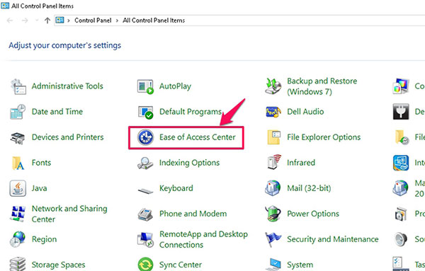- Bước 2: Bạn cần chọn vào icon Ease of Access Center – Trung tâm dễ truy cập
