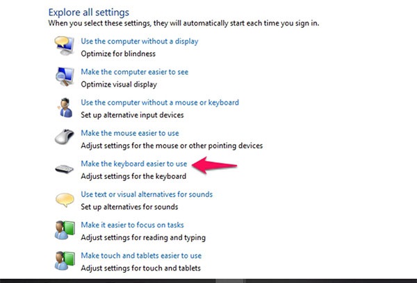 - Bước 3: Chọn vào icon Make the keyboard easier to use – Làm cho bàn phím dễ sử dụng hơn