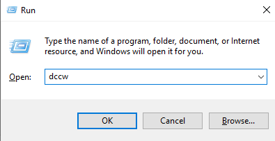 Bước 1: Nhấn tổ hợp phím Windows + R để hiện thị hộp thoại Run. Nhập từ khóa “dccw” và nhấn OK để mở phần mềm chỉnh màu màn hình laptop Display Color Calibration.