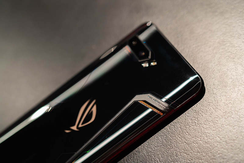 Bên cạnh đó, phần mặt lưng máy còn được trang bị cụm camera kép, 2 đèn LED và thương hiệu ASUS ROG được tích hợp đèn màu (có khả năng chuyển sắc RGB). Kết hợp cùng những đường nét gai góc, ROG Phone II càng trở nên thu hút và đậm chất game thủ.
