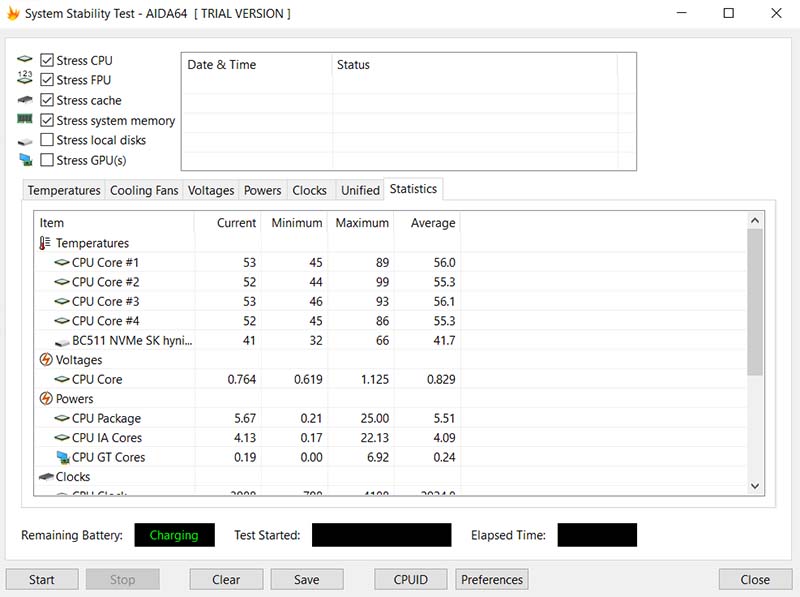 Đo khả năng tản nhiệt của Dell Vostro 5590 bằng phần mềm AIDA64.