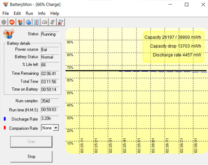 Thống kê thời lượng pin đo bằng BatteryMon.