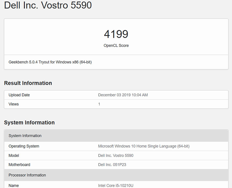 Đo cấu hình Dell Vostro 5590 bằng phần mềm GeekBench 5.