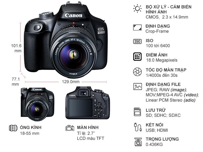 Cấu hình kỹ thuật và tính năng của Canon EOS 3000D