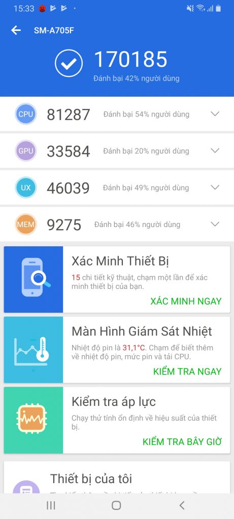 Nhưng người viết cảm thấy hài lòng nhất là trải nghiệm các tác vụ sử dụng hàng ngày lướt web, nghe nhạc, ứng dụng mạng xã hội. Galaxy A70 đều phản hồi rất nhanh và mượt mà.
