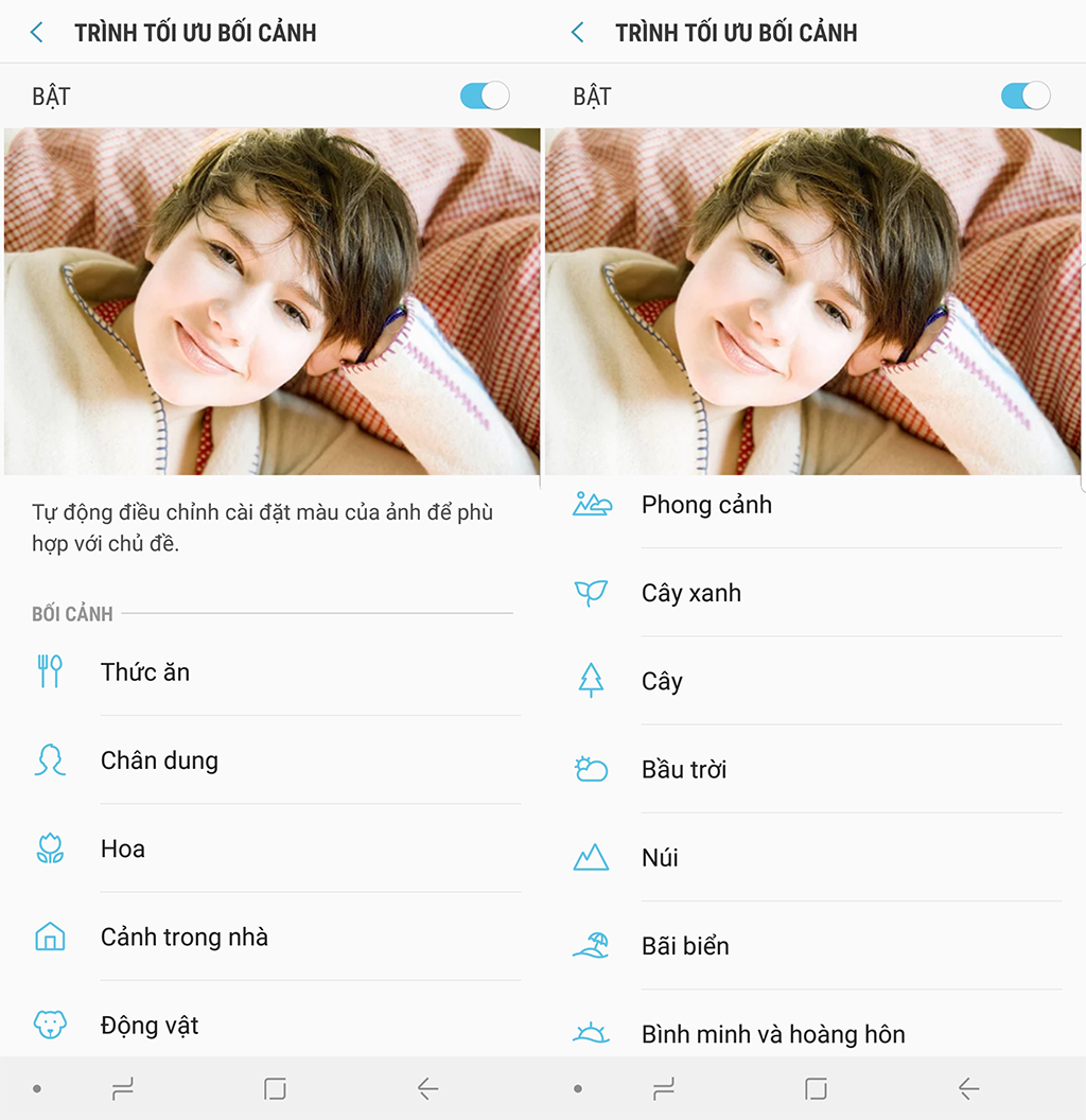 Note 9 có thể tự động xác định 20 cảnh chụp và tối ưu hóa các cài đặt tương ứng