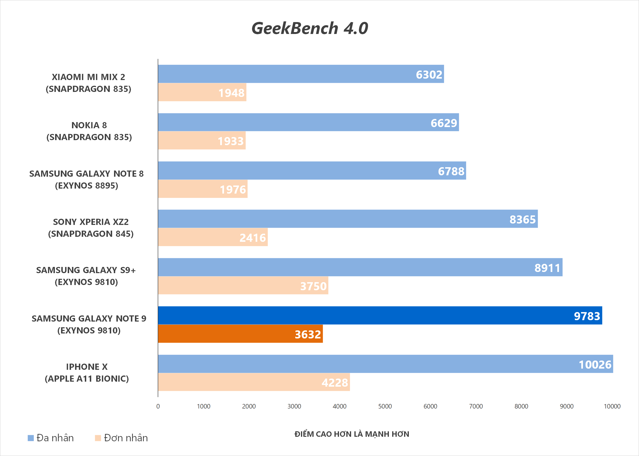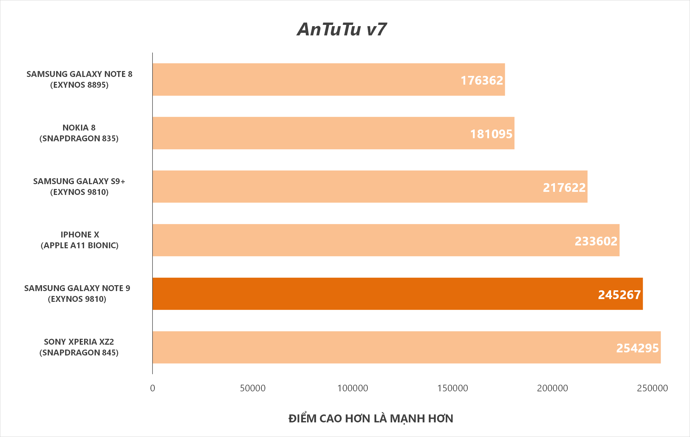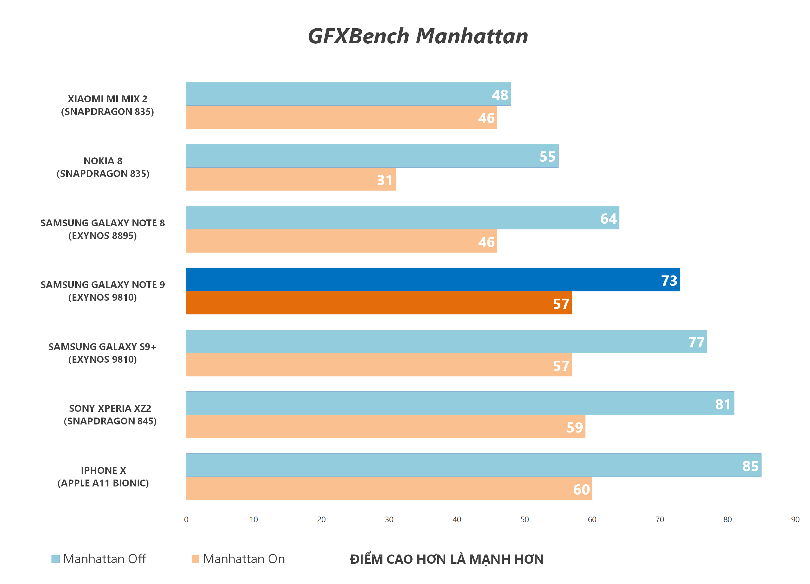 Note 9 duy trì hiệu suất ổn định và không bị tụt xung để cân bằng nhiệt độ như Galaxy S9 + và iPhone X.
