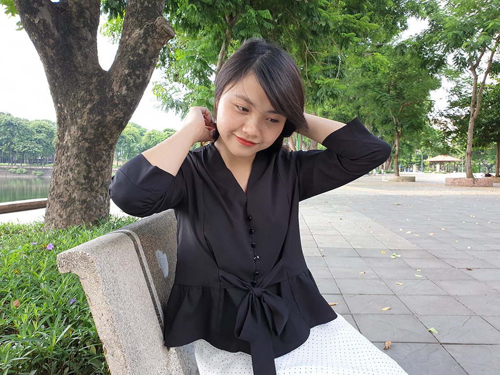 Chế độ chụp chân dung của Galaxy Note 9 được gọi là chức năng dynamic collection (lấy nét theo thời gian thực), có thể nhận diện các góc cạnh của chủ thể và tính toán độ sâu để xóa phông rất chuẩn. Vì vậy, hầu hết các bức ảnh xóa phông đều đủ sáng để trông tự nhiên. Với ảnh chân dung, một số bức ảnh vẫn xóa nhầm một số vùng tóc ở viền, tuy nhiên tình trạng này rất nhỏ, bạn phải phóng to lên mới thấy được, nếu nhìn thường thì khó nhận ra.