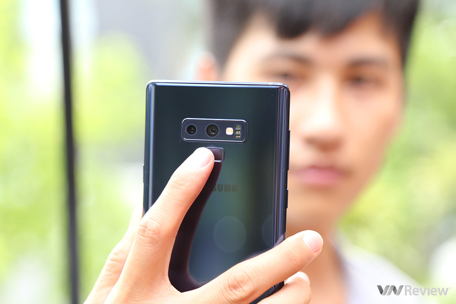 Cảm biến vân tay được đặt ở vị trí dễ bấm hơn, không dễ bấm nhầm vào camera như Note 8.