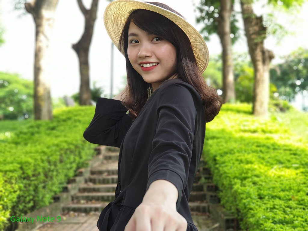 Lưu ý rằng camera trước là 8MP với độ phân giải 9, f / 1.7, hỗ trợ lấy nét tự động để chụp. Trong điều kiện đủ sáng, ảnh selfie tắt chế độ làm đẹp có chất lượng tốt, độ nét cao, chi tiết phong phú, màu sắc tái tạo gần với thực tế. Mặc dù sử dụng bút S Pen khi điều khiển từ xa, nhưng với Note 9 thì lòng bàn tay đã được giúp đỡ và hỗ trợ một cách dễ dàng. Chế độ làm đẹp trên camera selfie rất tốt, có 11 kiểu make-up theo phong cách khác nhau, thích hợp cho nữ sử dụng. Các camera phía trước có một chế độ loại bỏ phông chữ và hiệu quả là tương đối, làm cho tự sướng ảnh nổi bật hơn, đặc biệt là khi ảnh tự chụp có nền đơn giản và ít chi tiết hơn.