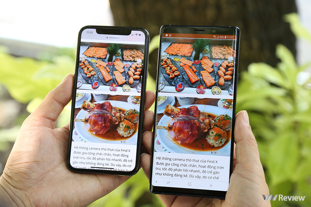 Điểm tương đồng giữa màn hình Note 9 và iPhone X là góc nhìn, độ sáng và khả năng quan sát.