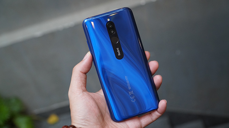 Từ màu xanh dương, mặt sau sẽ chuyển dần sang màu xanh đen sang trọng, sau đó trở lại màu xanh ngọc trông khá đáng yêu. Hơn nữa Xiaomi Redmi 8 còn hiện diện thêm những đường gờ sáng lấp lánh mang đến vẻ đẹp đầy sáng bóng mới mẻ.