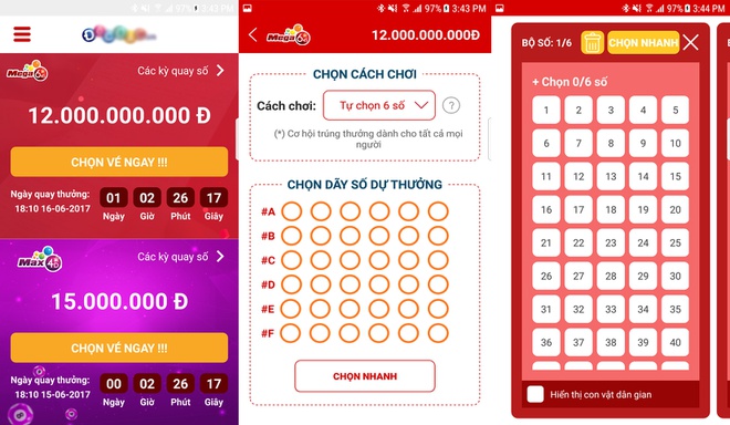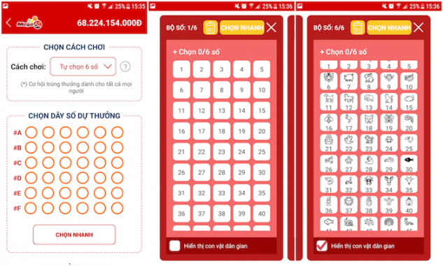 Sau khi hoàn tất việc nạp tiền vào tài khoản, bạn có thể tiến hành mua vé số bằng cách chọn dãy số mà mình muốn. Hoặc bạn có thể chọn chế độ lấy số ngẫu nhiên của ứng dụng, sau đó xác nhận và tiến hành thanh toán.