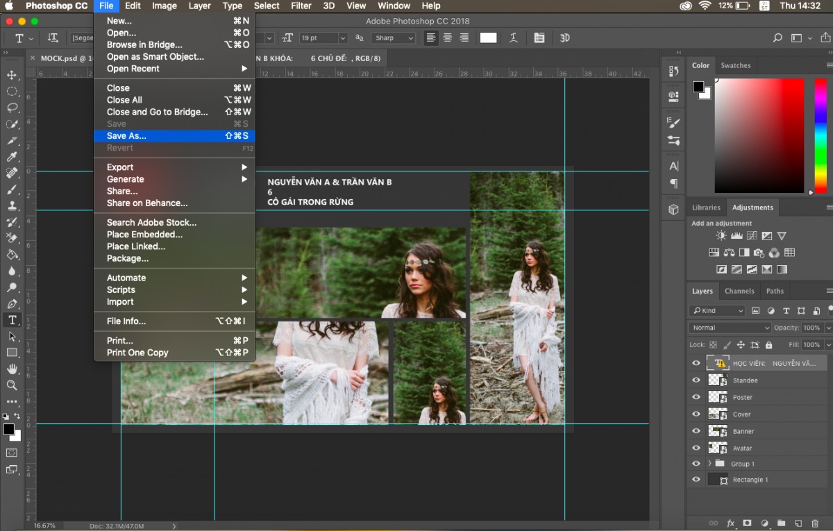 Bước 5: Sau đó chọn Save for web hoặc Nhấn Alt Ctrl Shift S để bắt đầu lưu.