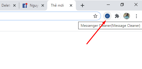 - Bước 3: Khi Messenger Cleaner được tải về thành công, bạn hãy quan sát góc trên bên trái màn hình, cuối thanh địa chỉ trình duyệt có biểu tượng hình chổi quét biểu tượng tin nhắn màu xanh, bạn hãy nhấn vào đó.