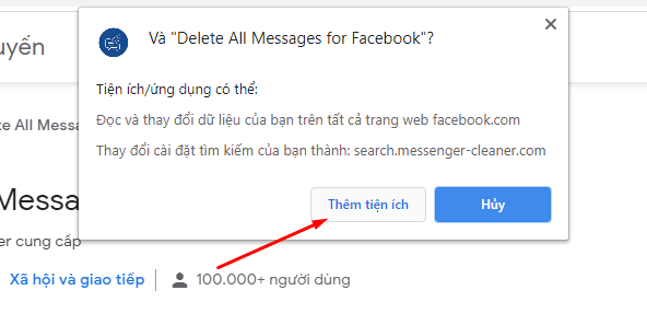 - Bước 1: Bạn tải tiện ích mở rộng Messenger Cleaner rồi nhấn Thêm vào Chrome để cài đặt vào trình duyệt Chrome của mình.