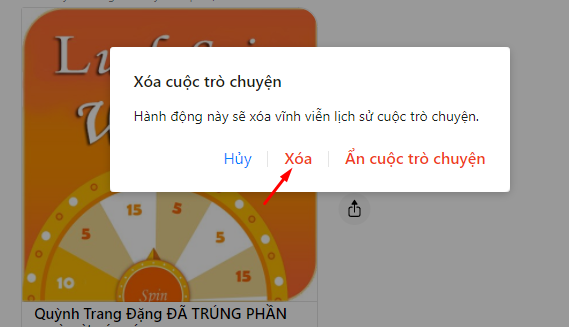 - Bước 3: Sau khi bạn bấm Xóa, Messenger sẽ hỏi lại bạn có muốn xóa cuộc trò chuyện này hay không, nếu bạn muốn xóa, hãy nhấp vào Xóa để xóa vĩnh viễn tin nhắn.