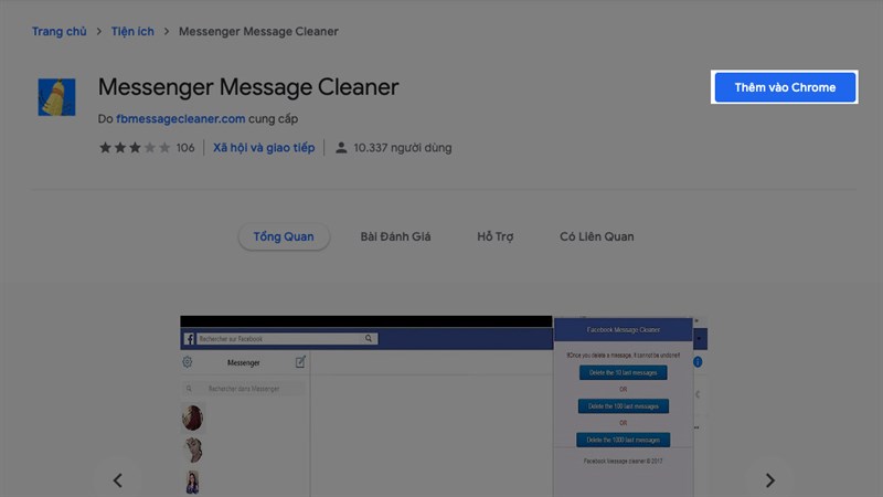 Đầu tiên, bạn tải phần mở rộng (extension) Mesenger Message Cleaner trên Google Chrome theo trình duyệt bên dưới.